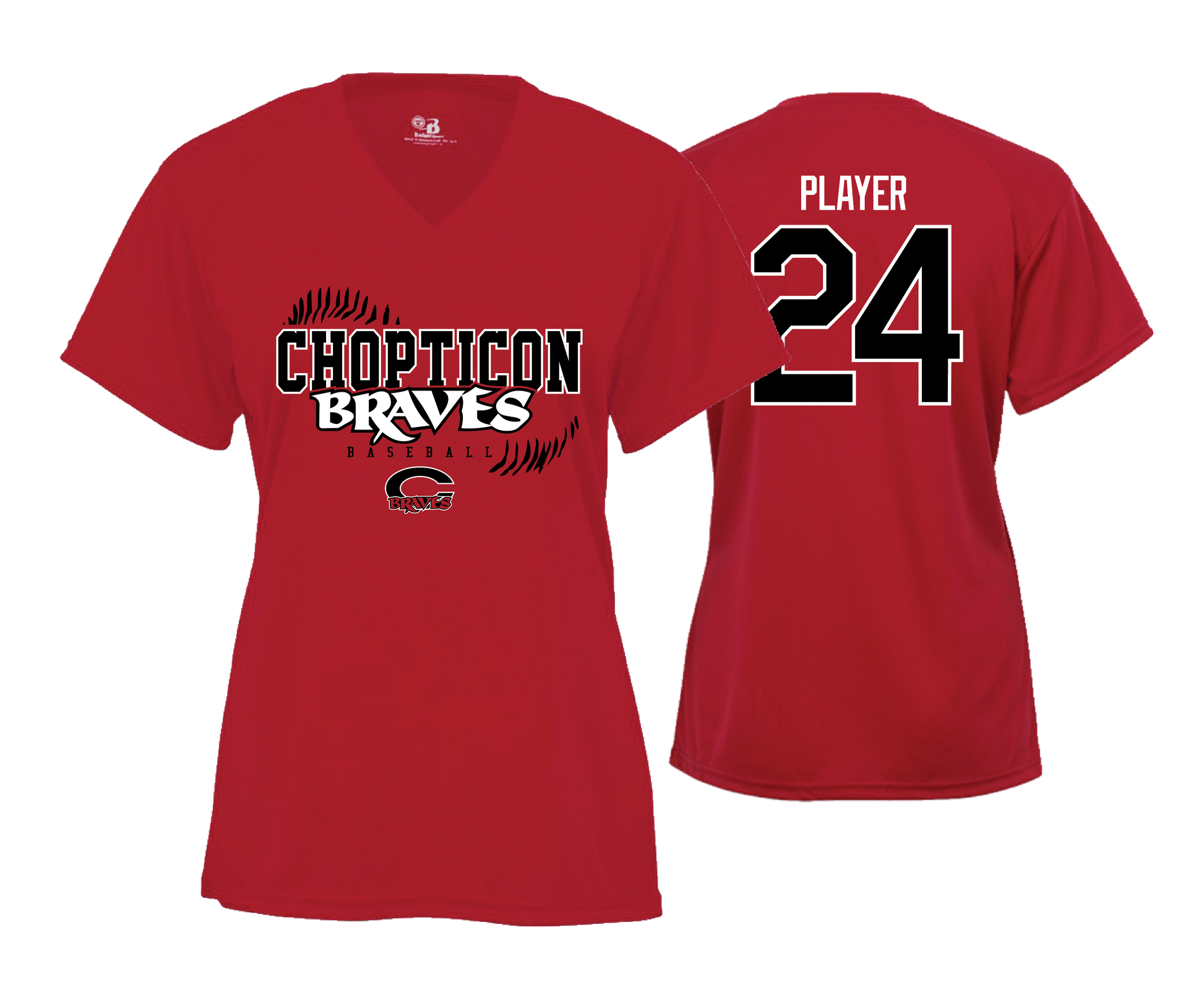 Chopticon Braves Baseball Women's V Neck Performance Tees