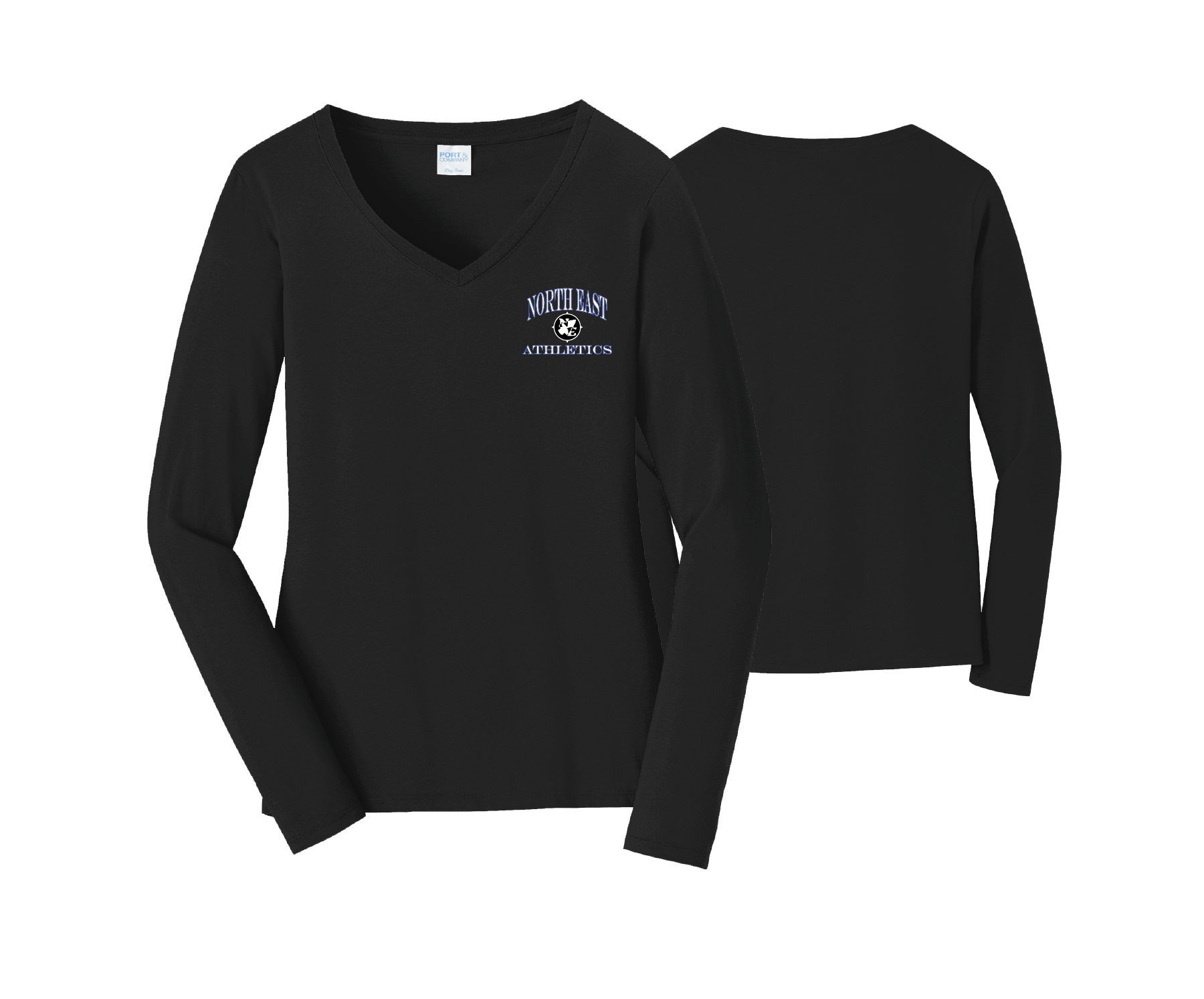 NE Athletics - DTF | Women's Long Sleeve Cotton V-Neck Tee